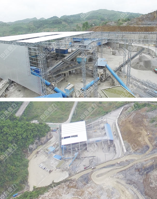 這條位于四川宜賓的骨料生產(chǎn)線由中譽(yù)鼎力進(jìn)行相關(guān)設(shè)備的提供以及整個產(chǎn)線的建設(shè),項目于2017年4月正式竣工并開始投入生產(chǎn),運(yùn)行中的生產(chǎn)線實際每小時產(chǎn)量在700噸左右,會根據(jù)處理物料以及給料速度略有浮動。該生產(chǎn)線使用錘破加整形破的設(shè)備配置,能夠很嗨的處理各類中軟物料。產(chǎn)線大致的工藝流程為:給料機(jī)將物料送至錘式破碎機(jī)破碎腔內(nèi)進(jìn)行粗碎,之后由底部出料口排出,由傳送帶運(yùn)送到整形破進(jìn)行細(xì)碎處理,然后物料基本成型,由振動篩將不同粒度的物料篩分開來即可。同時,生產(chǎn)線還進(jìn)行了封閉,以減少運(yùn)行時的粉塵污染。